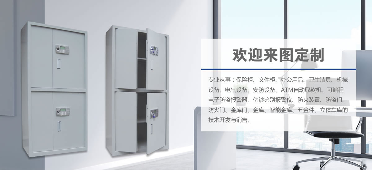 ? 專業(yè)從事:保險(xiǎn)柜、文件柜、辦公用品、衛(wèi)生潔具、機(jī)械設(shè)備、電氣設(shè)備、安防設(shè)備、ATM自動(dòng)取款機(jī)、可編程電子防盜報(bào)警器、偽鈔鑒別報(bào)警儀、防火裝置、防盜門(mén)、防火門(mén)、金庫(kù)門(mén)、金庫(kù)、智能金庫(kù)、五金件、立體車(chē)庫(kù)的技術(shù)開(kāi)發(fā)與銷售